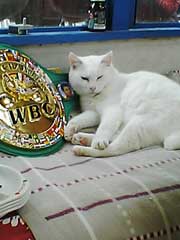 チャンピオンベルトを枕にするネコの巻